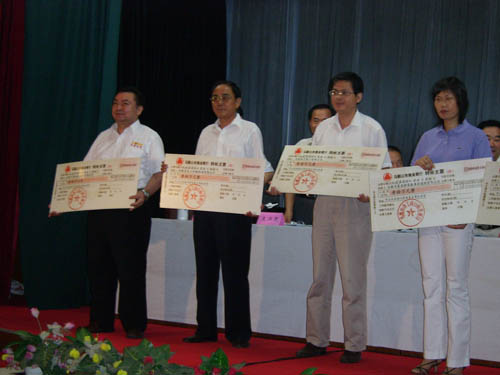 2006年7月26日下午,馬鞍山市2005年獲省著名商標(biāo)企業(yè)表彰大會(huì)在市政府東二樓會(huì)議室舉行,出席本 次會(huì)議的主要領(lǐng)導(dǎo)有省工商局副局長(zhǎng)黃家華、市人大常委會(huì)副主任杜永田、市政府副市長(zhǎng)劉榮華、市政協(xié) 副主席孫文植、市政府副秘書長(zhǎng)王興無、省工商局商標(biāo)局局長(zhǎng)劉國(guó)建等。