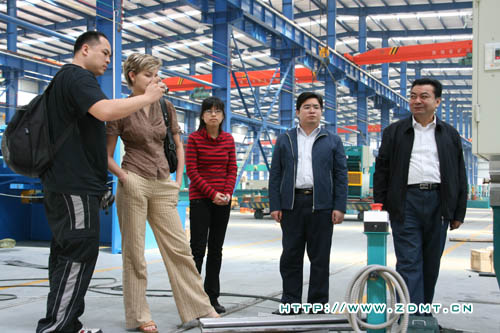 這位波蘭客人對機(jī)械行業(yè)非常了解,她告訴我們,他們的工廠車間里正在使用歐美品牌的同類機(jī)器,對其使用和操作流程都非常的熟悉,當(dāng)然,看機(jī)器的眼光也是相當(dāng)?shù)膶I(yè)。這次中德行的目的主要是考察我們公司的大型雙機(jī)聯(lián)動折彎機(jī)。參觀過我們的投入使用不久的大型裝配車間后,客人立即表示對中德的生產(chǎn)規(guī)模和產(chǎn)品質(zhì)量非常的滿意,是一家值得信賴和合作的優(yōu)秀制造商,客人希望以后能夠代理我們的產(chǎn)品以期與我們建立長期合作的貿(mào)易關(guān)系。