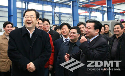 孫志剛副省長認真的參觀了中德機床一萬平方的裝配車間,他關切的詢問了鄭總關于中德機床的歷史來源,生產銷售情況,以及市場前景。鄭總也很熱情的向孫志剛副省長匯報了情況:中德機床歷史十余年,名字的寓意是我公司是中國的企業但是目標是為追求德國卓越的產品品質以及體現我公司“以德治企”的管理理念。公司近幾年來的快迅發展,雖然離不開公司一直以來的勵精圖治工作態度,更離不開的是省內外發展的大背景,和中國開放的國際眼光。中德機床內貿外貿并舉,業績逐年穩步上升,勢頭良好。孫志剛副省長頻頻微笑點頭,對中德機床的企業狀況感到欣慰。同時,孫志剛副省長也激勵我公司,一定要抓住機遇,繼續發展。