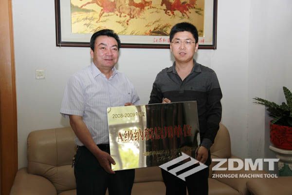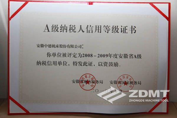 中德機(jī)床榮獲“2008-2009年度安徽省A級納稅信用單位”榮譽稱號